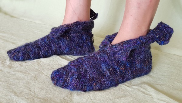 Sur un sol en parquet ou catelles, ces chaussettes peuvent glisser : faites attention lorsque vous marchez sur un sol lisse. Moi, Françoise Devaud et Esprits de la Forêt déclinons donc toute responsabilité lors d’une chute éventuelle.